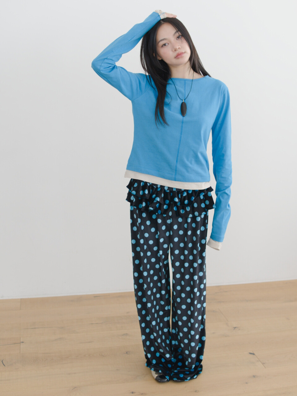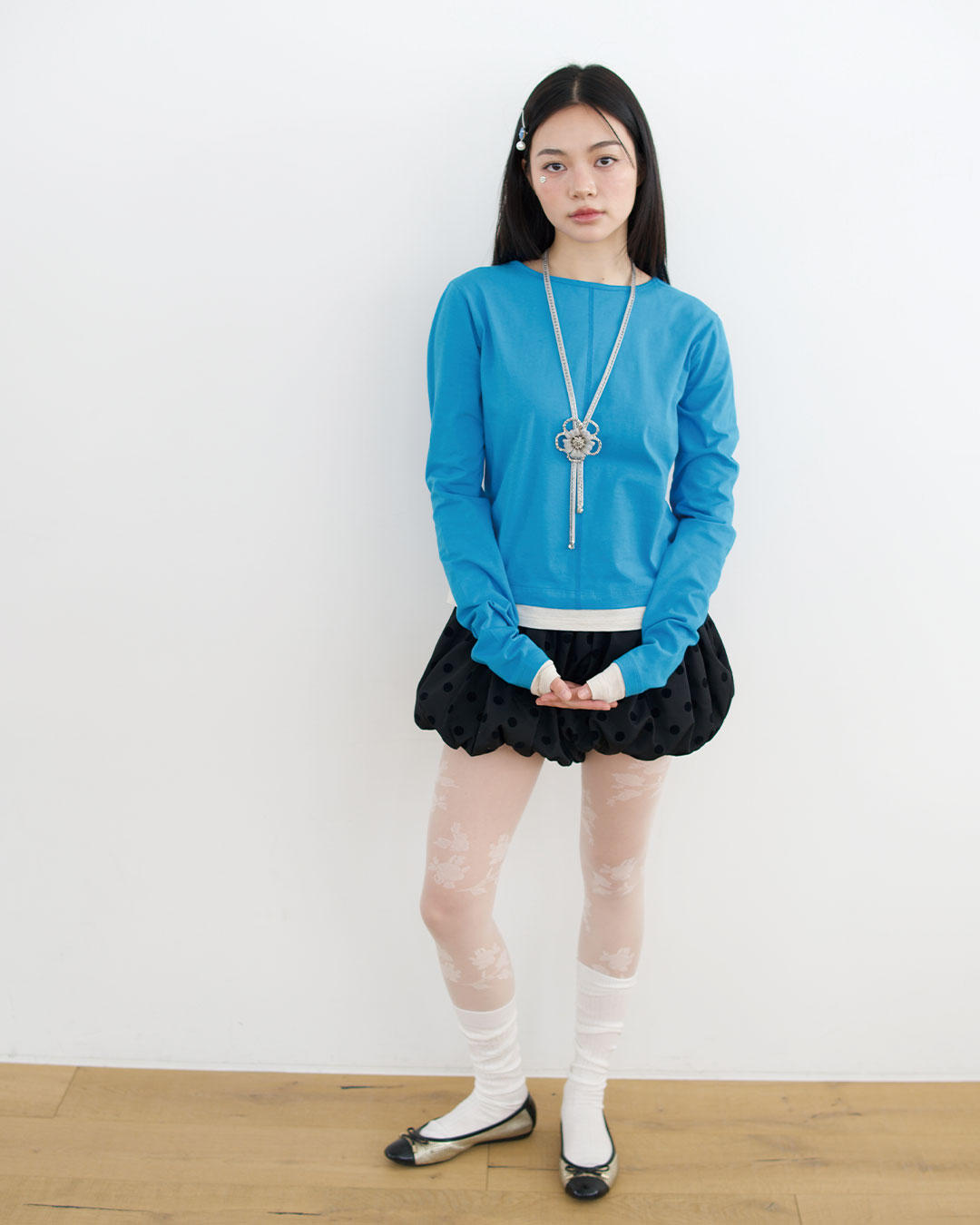 데님, 롱스커트, 와이드 팬츠 등 어떤 하의와도 자연스럽게 어울립니다.