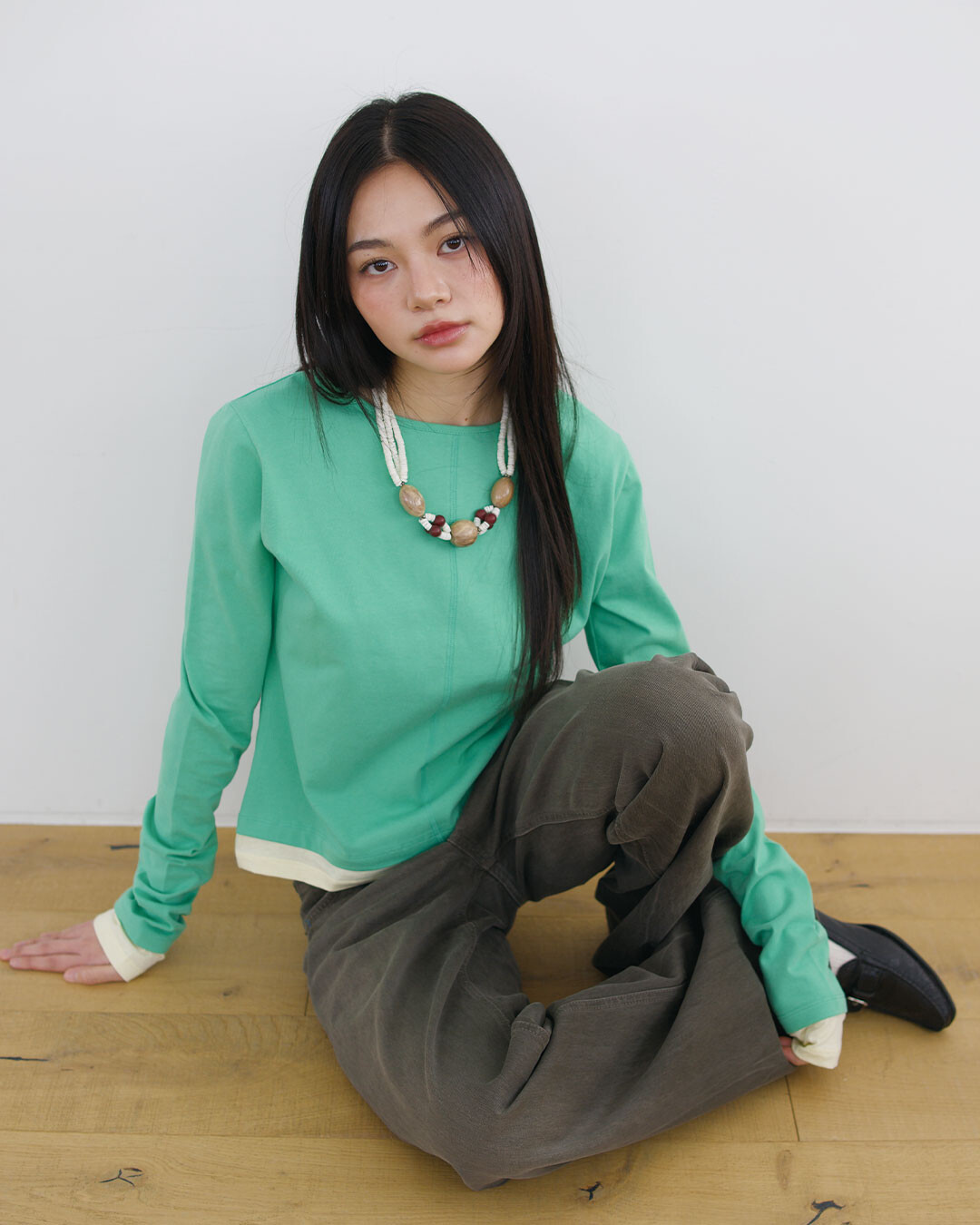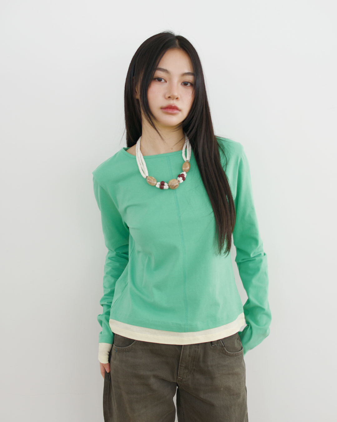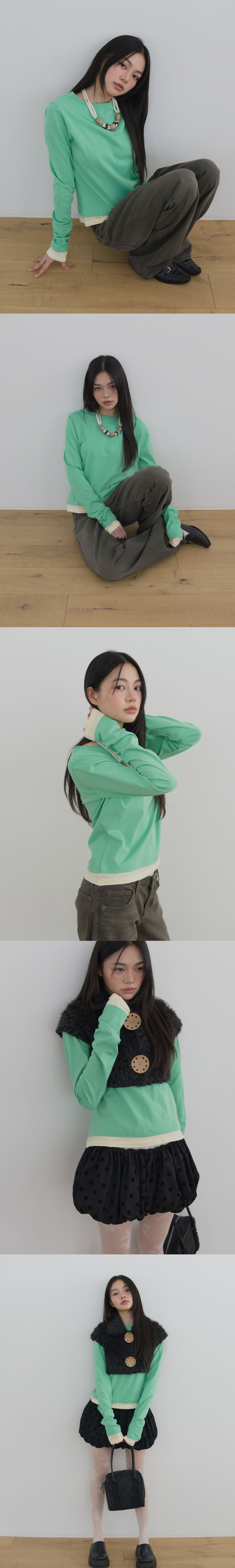 Layerd Long Sleeve T-shirts, Green