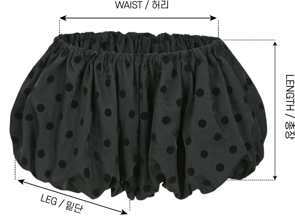 허리와 밑단에 밴딩으로 만들어서 편안하게 착용할 수 있고, 풍성하게 잡힌 셔링 덕분에 움직일 때마다 둥글둥글한 실루엣이 살아나요.