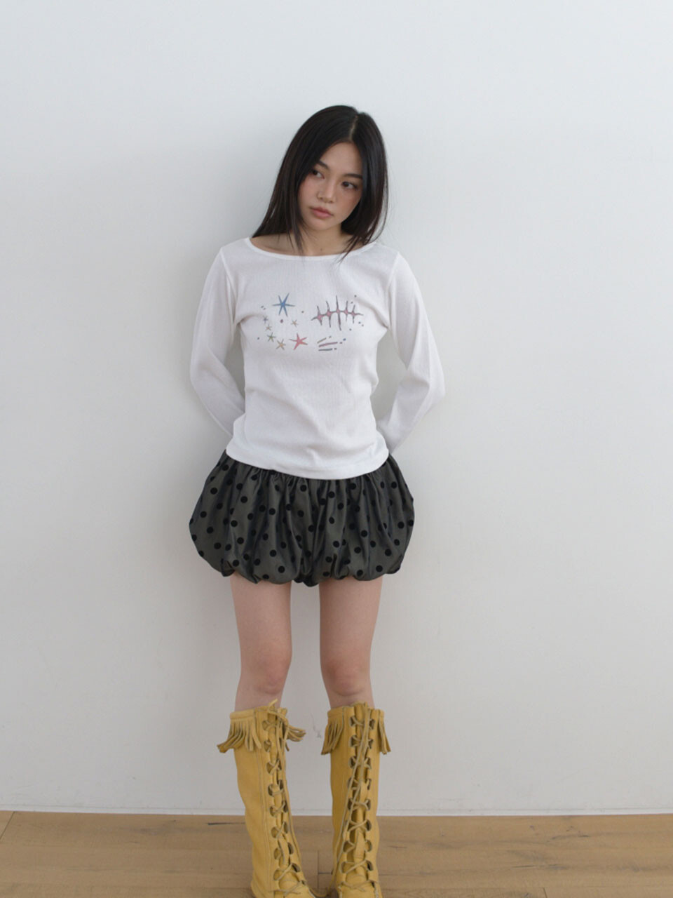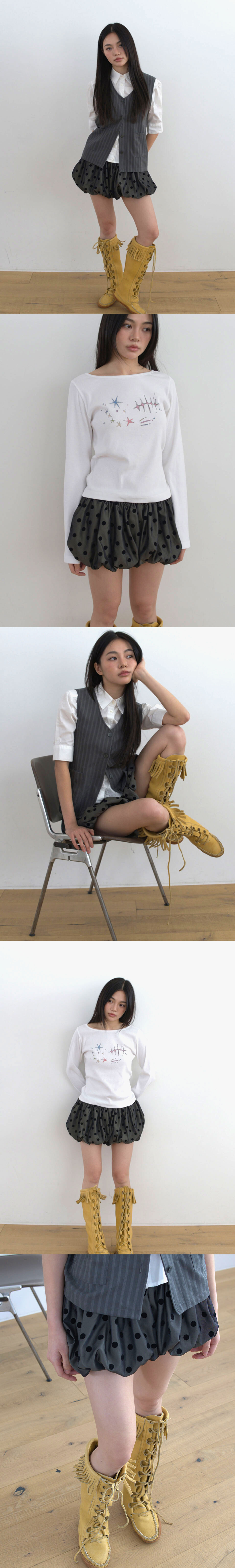 잔잔한 도트 패턴과 은은한 컬러감이 어우러져, 입는 순간 귀엽고 사랑스러운 무드를 완성해줘요.